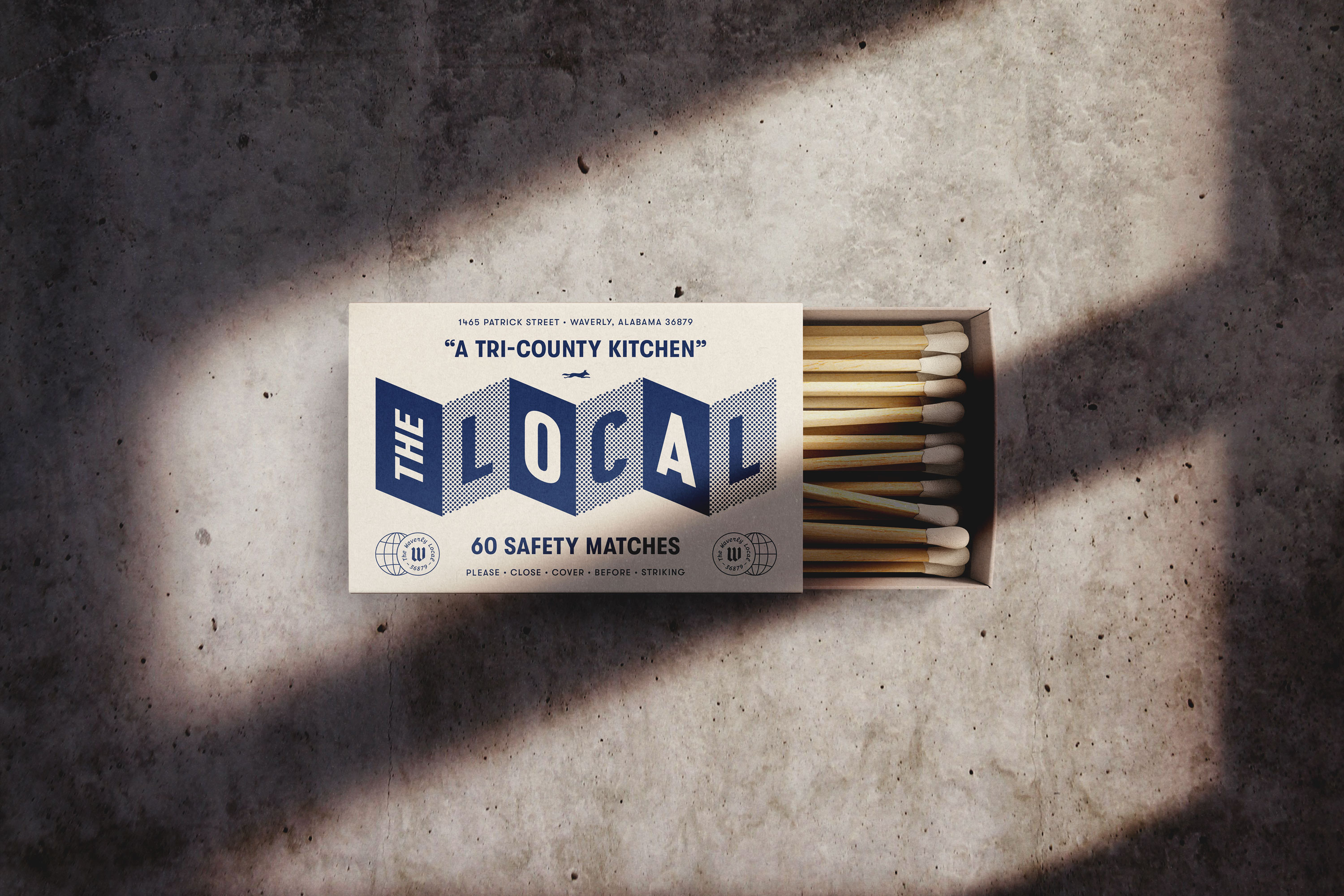 Two square miles and a long way from anywhere else is Waverly, Alabama. The small town has one post office, no traffic lights, 145 residents, and The Local—a southern dining gem in a century-old building. The identity is as simple and unpretencious as the restaurant’s cuisine, borrowing type styles from hand-painted signage and halftoned illustrations.